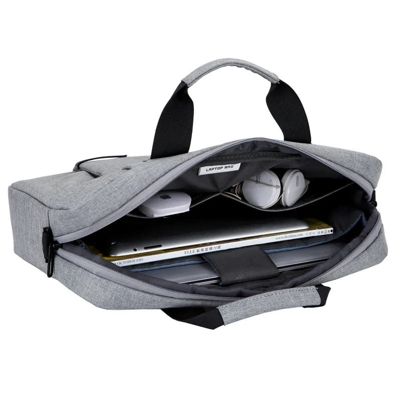 Valitse tyylikäs lisävaruste tällä ammattikäyttöön tarkoitetulla tietokonelaukulla, joka on hillitty musta malli, joka yhdistää tyylin ja käytännöllisyyden, täydellinen työmaailmaan ja kaupallisiin matkoihin. Nylonista valmistettu laukku suojaa tietokoneesi säilyttäen samalla modernin ja ammattimaisen ilmeen. Sen kompakti muotoilu, jossa on vahva vetoketju, takaa mukavan ja turvallisen käytön päivittäisillä matkoillasi.