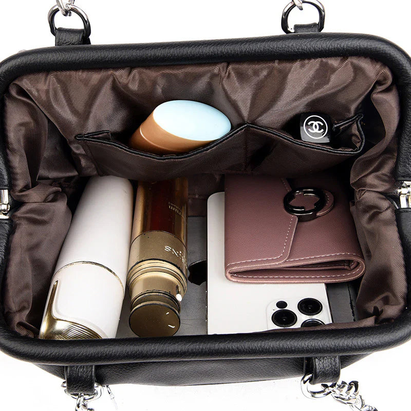 Tutustu Angela-käsilaukkuun, joka on täydellinen yhdistelmä eleganssia ja käytännöllisyyttä. Tämä korkealaatuisesta nahasta valmistettu laukku erottuu ajattomalla muotoilullaan ja hienostuneella ilmeellään. Tilava ja monipuolinen, se on ihanteellinen seuraamaan sinua päivittäin, samalla lisäten chic-vivahteen asuihisi.