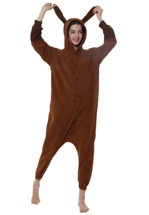 Pukeudu Eevee kigurumiisi, joka on valmistettu pilou pilou -materiaalista tuoden paljon pehmeyttä, ja säädä se itsellesi sopivaksi nappikiinnityksellä. Laita huppu pitkine korvineen päähäsi ja astu Pokémon-areenalle!