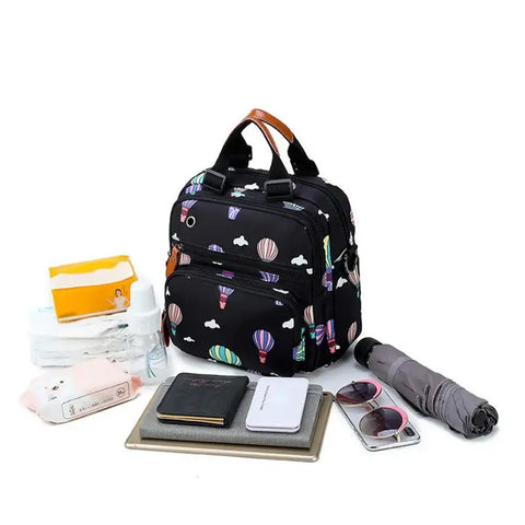 Helpota elämääsi tällä upealla klassisella hoitolaukku-repulla. Suunniteltu äideille, tämä 15 litran vetoinen pieni hoitolaukku sisältää useita pieniä vetoketjullisia taskuja, joissa voit säilyttää kaikki tarvittavat ja paikan tuttipulloille. Ihanteellinen liikkeellä oleville vanhemmille, ergonominen, kompakti ja kevyt, se on valmistettu oxford-kankaasta ja sillä on hyvä vesitiiviys. Kauniilla pienillä kuumailmapallokuviolla, se on mukava ja miellyttävä kantaa.