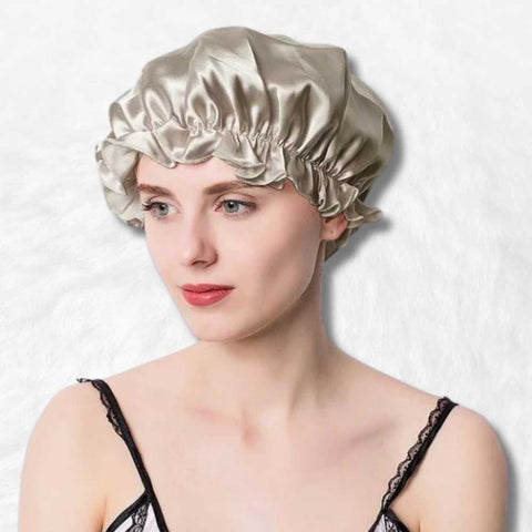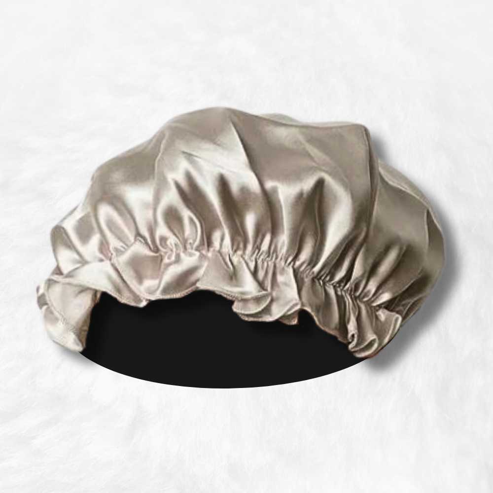 Tämä hopeinen silkkinen yömyssy on suunniteltu erityisesti sinua varten. Tämä tyylikäs hopeinen yömyssy tarjoaa muutakin kuin vain suojaa hiuksiasi. Se ilmentää ansaitsemaasi ylellisyyttä ja ensiluokkaista hoitoa. Silkki, jalo ja herkkä materiaali, on tunnettu ihoa ja hiuksia hyödyttävistä ominaisuuksistaan. Valitsemalla tämän yösuojuksen tarjoat hiuksillesi suojaa kitkaa ja katkeilua vastaan. Silkki vähentää myös kosteuden menetystä, jolloin hiuksesi pysyvät pehmeinä ja silkkisinä.