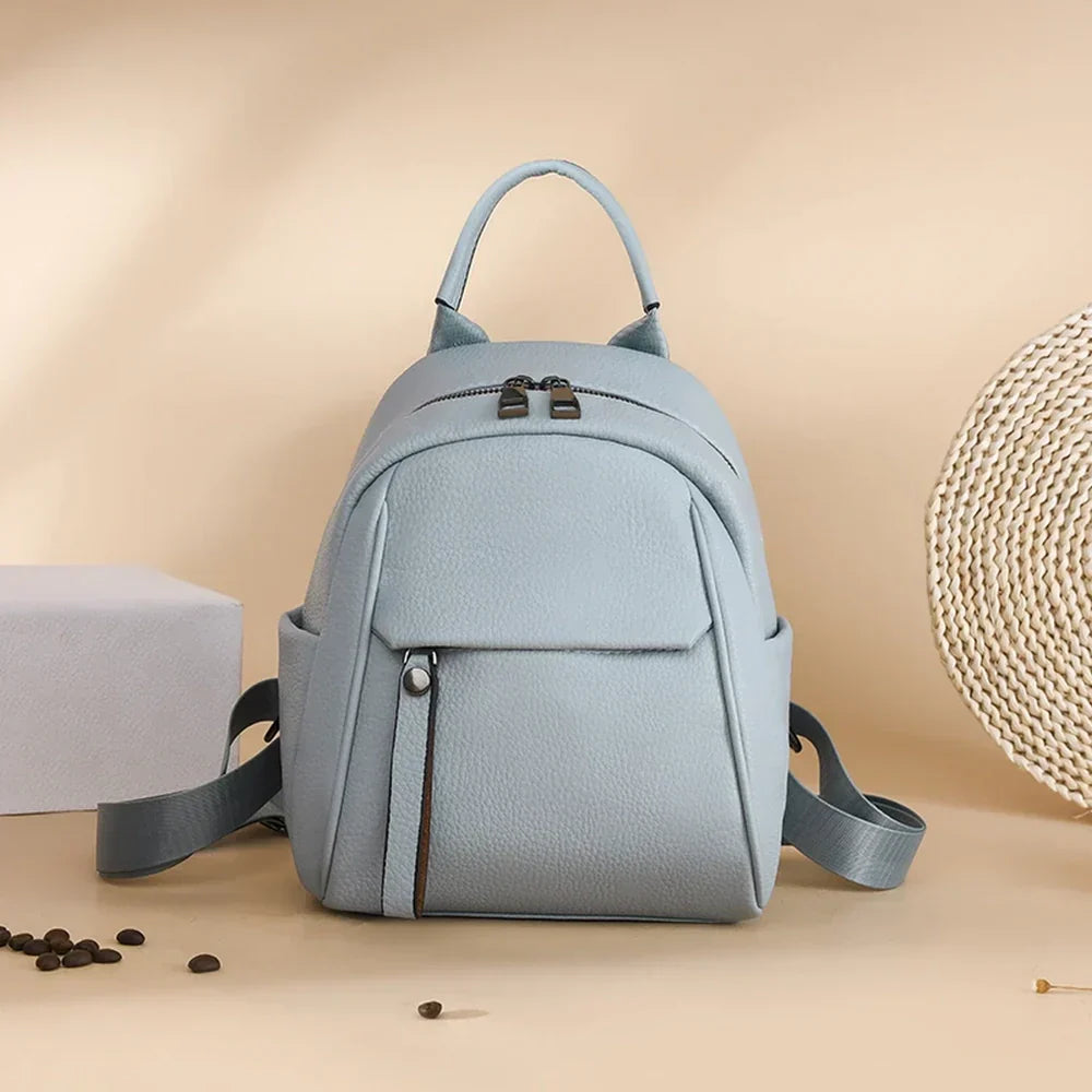 Tämä käytännöllinen pieni nahkareppu on trendikäs ja muodikas. Se on täydellinen kaupungille tai vapaa-ajalle. Se on valmistettu korkealaatuisesta nahkamateriaalista, se on vedenkestävä, kestävä ja erittäin kevyt.