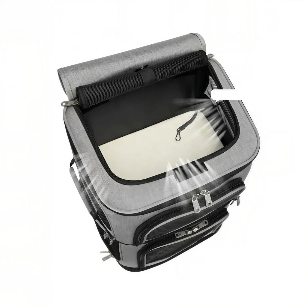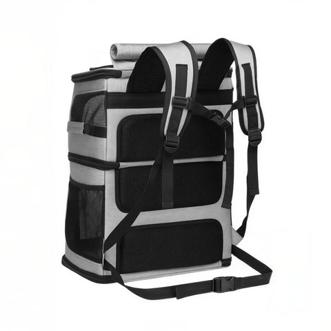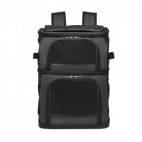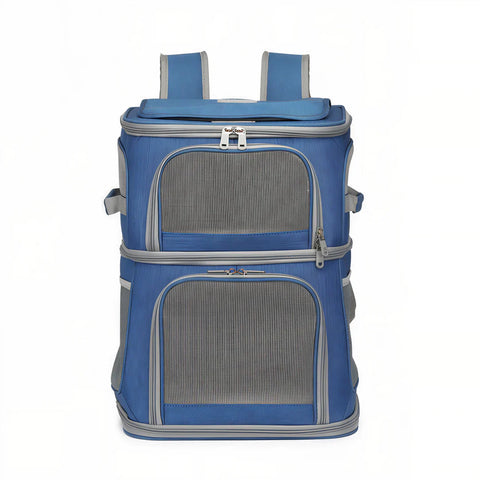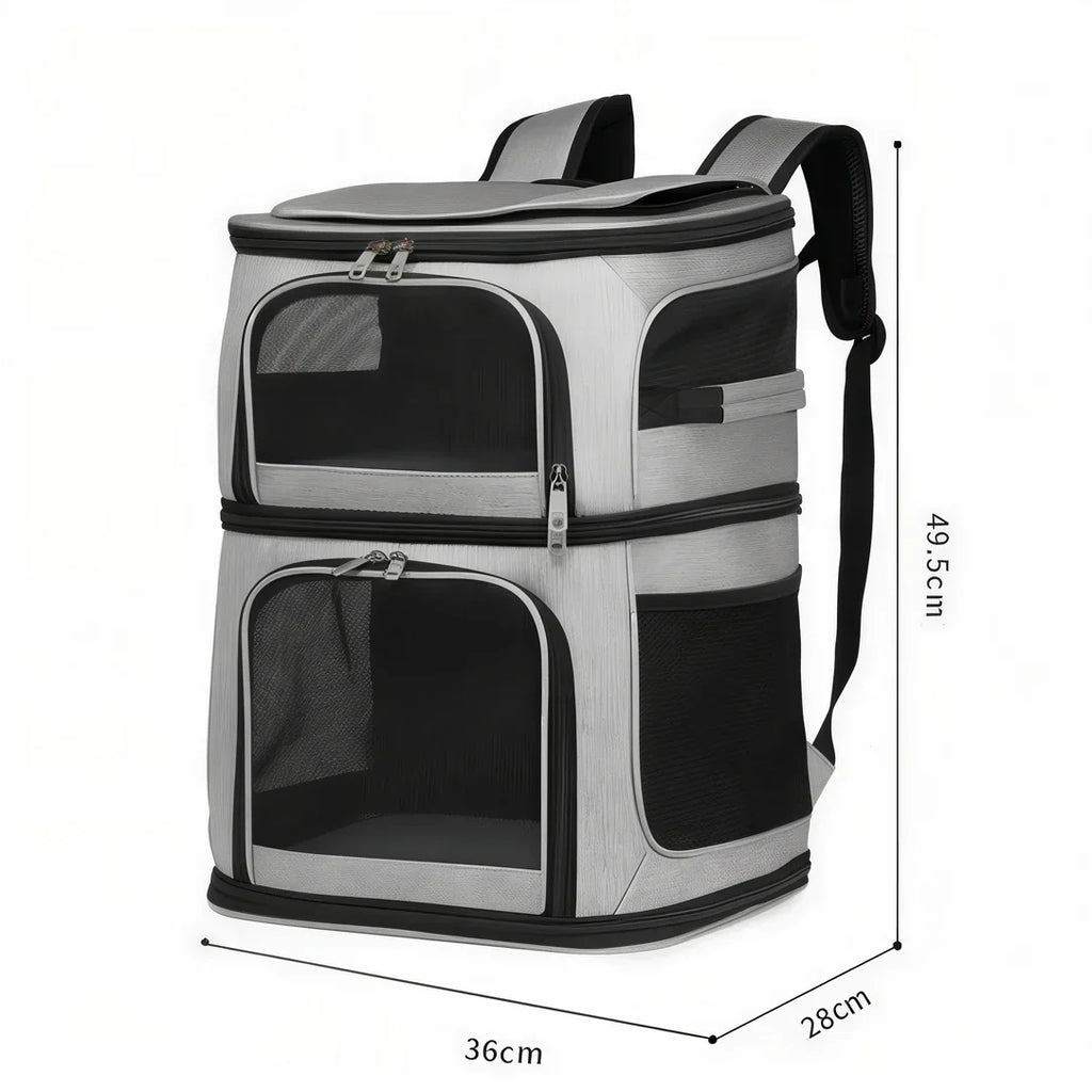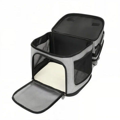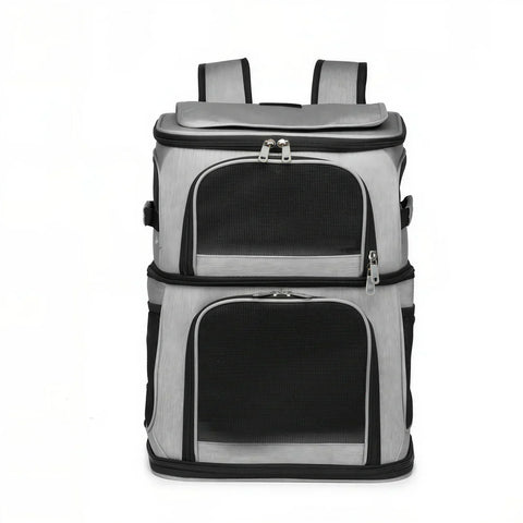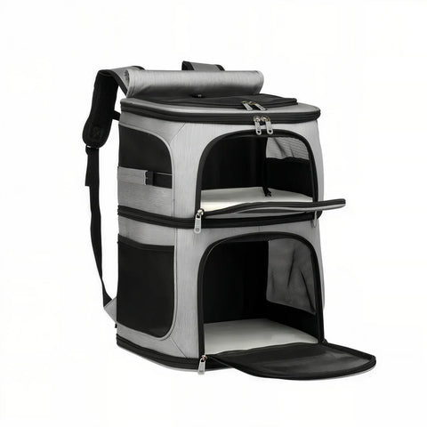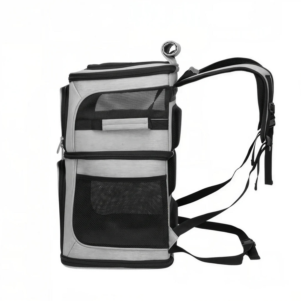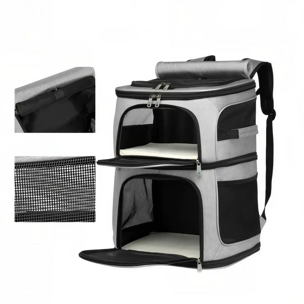Tämä kuljetuslaukku kahdelle kissalle on suunniteltu perheille, joilla on kaksi kissa-kumppania. Sen kahdella erillisellä osastolla jokainen kissa voi matkustaa omassa tilassaan, mikä vähentää stressiä ja lisää mukavuutta. Verkkopaneelit takaavat jatkuvan ilmanvaihdon, kun taas tukeva rakenne suojaa lemmikkejäsi koko matkan ajan.