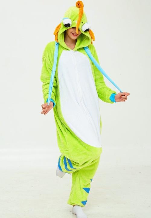 Tämä kigurumi kala -asu on saatavana kahdessa värissä: vihreänä ja valkoisena. Asun takana on kalanhäntä viittaamaan näihin vesieläimiin. Se odottaa vain merenalaisen elämän ystävää antamaan sille elämän. Luuletko olevasi tehtävän tasalla?