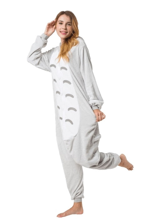 Usko tai älä, mutta Totoro on metsän henki, ja juuri siitä syystä sinä, joka olet niin lähellä luontoa, rakastat sitä niin paljon. Se muistuttaa suurta karhua, mutta sillä on myös pandan ja kissan piirteitä, jotka varmasti miellyttävät sinua. Sen harmaa turkki, kaksi pientä pyöreää silmää, pieni musta kuono ja valtava irvistävä hymy, joka vastaa omaasi, tämä aikuisten Totoro-asu on sekä pehmeä että lämmin ja sopii sinulle täydellisesti!