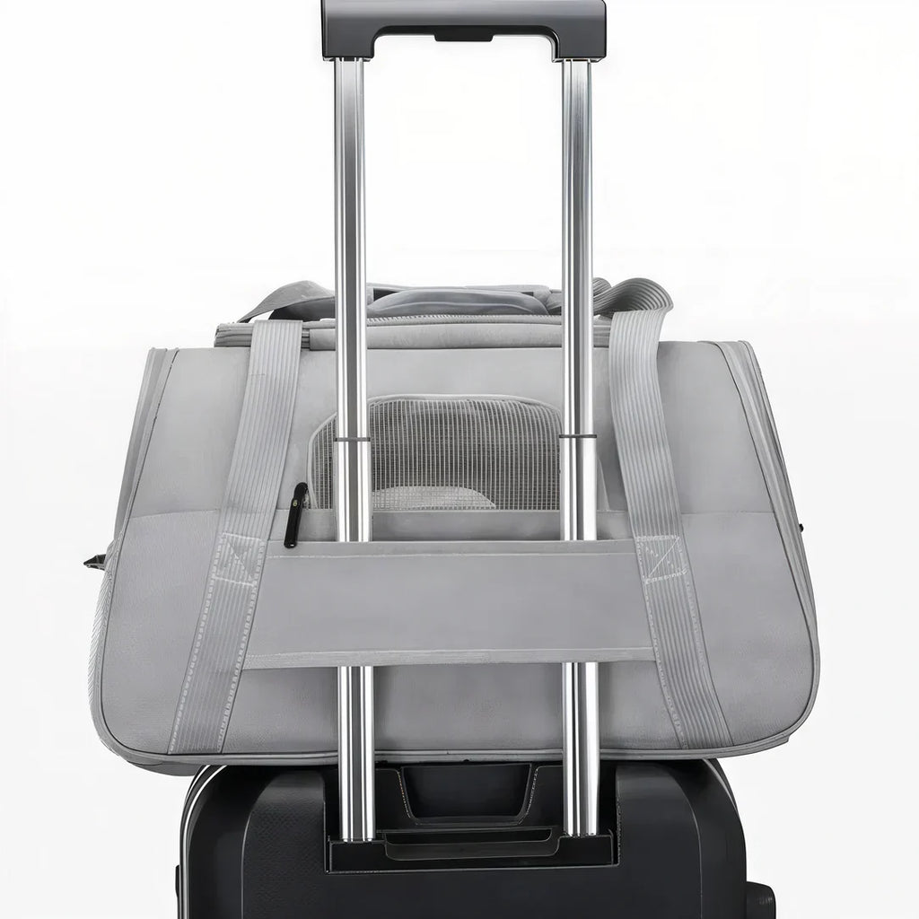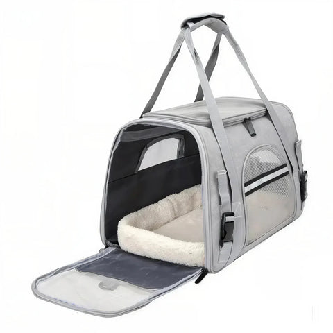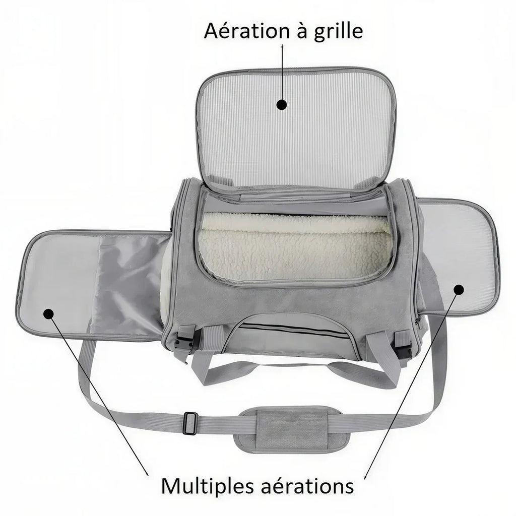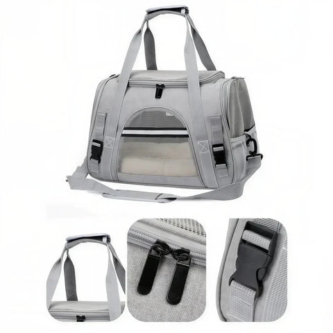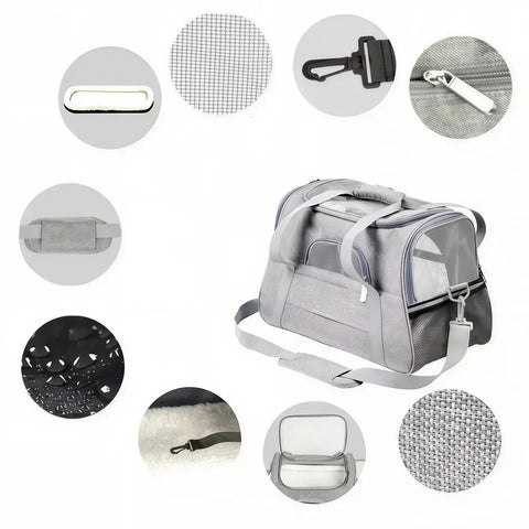 Täydellinen kaupunkiliikenteeseen, ulkoiluretkille tai eläinlääkärikäynteihin, tämä laukku on varustettu mukavalla matolla ja sisäisellä kiinnityshihnalla, jotta lemmikkisi pysyy turvassa koko matkan ajan. Kompakti ja käytännöllinen, se takaa vaivattoman kuljetuksen ja tarjoaa lemmikillesi mukavan tilan rentoutumiseen.