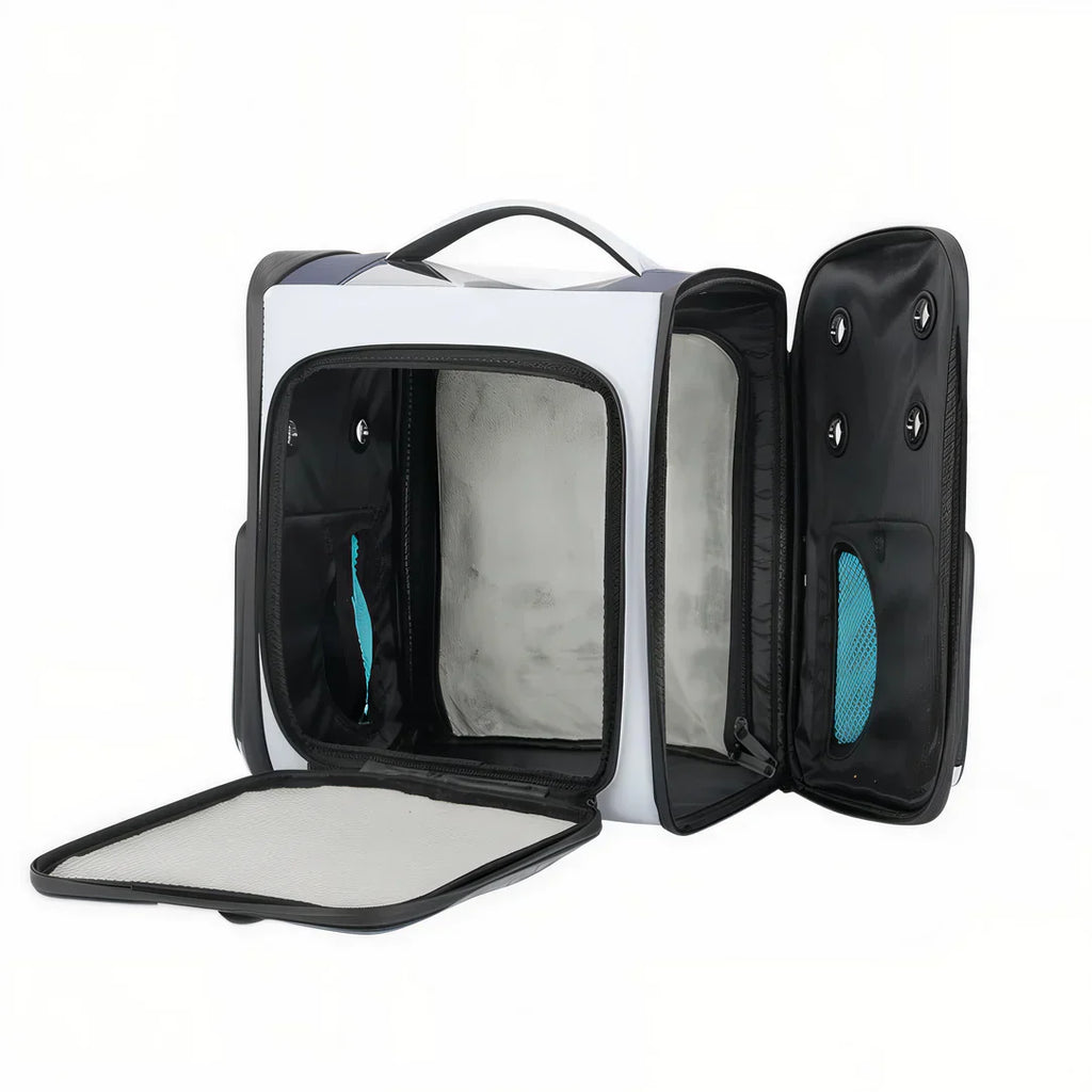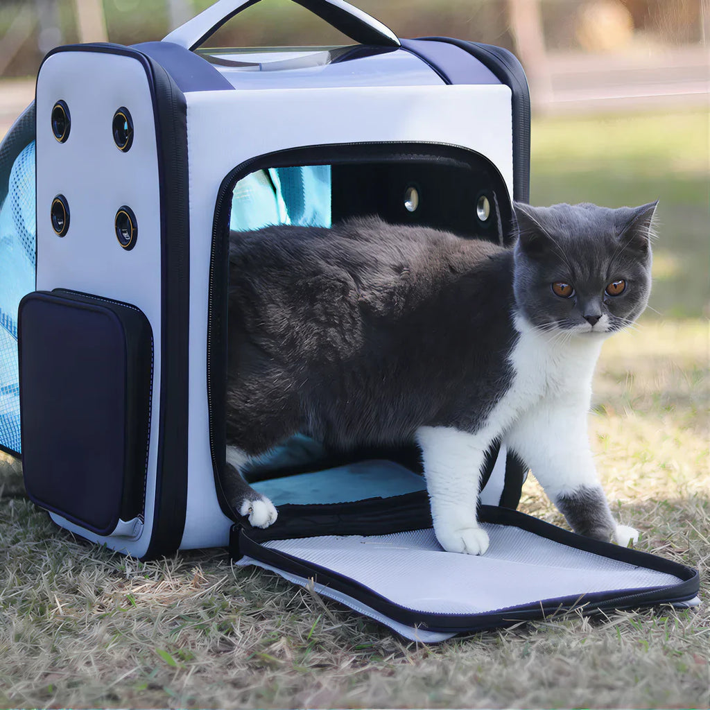 Breezy-reppu on laajennettava kuljetusreppu, joka on suunniteltu tarjoamaan kissallesi mukavuutta ja vapautta jokaisella matkalla. Sen tilavan suorakulmaisen muodon ja verkkotuuletetut seinät ansiosta jokainen matka muuttuu kissallesi miellyttäväksi ja rauhoittavaksi kokemukseksi.