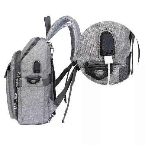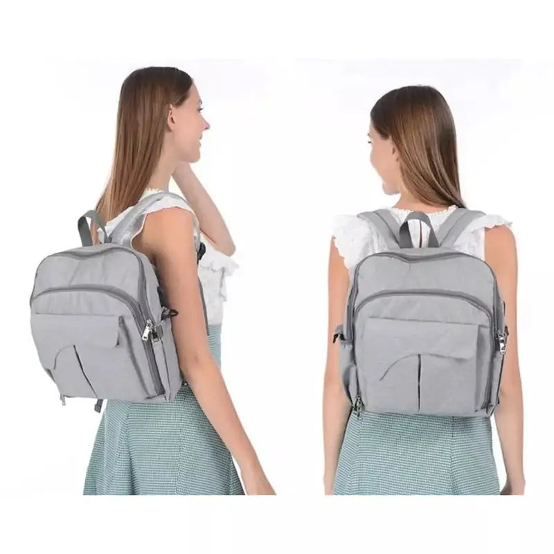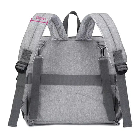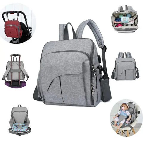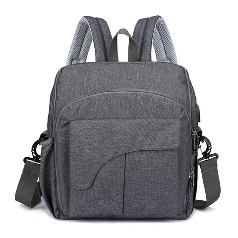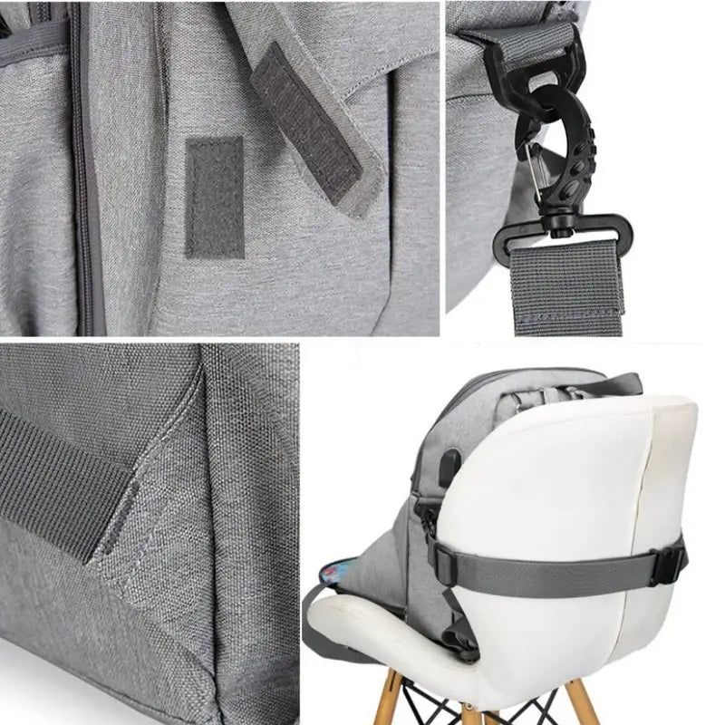 Suunniteltu perheesi retkille, matkoille tai kaupunkiseikkailuille, vauvanhoitolaukkureppumme tarjoaa tilavan säilytystilan useilla taskuilla, jotka auttavat järjestämään vauvan tavarat. Siinä on myös eristetty osasto tuttipulloille ja kaikki, mitä tarvitset vanhemman elämän helpottamiseksi liikkeellä. Useissa väreissä saatavilla olevassa laukussa on myös USB-portti puhelimesi lataamiseen ja se sisältää vaunukiinnikkeet.