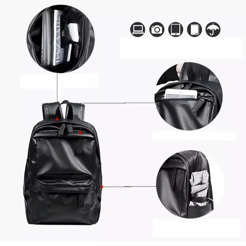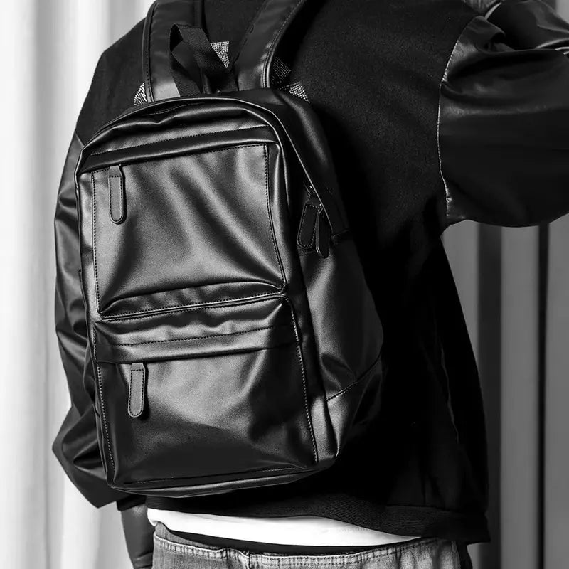 Anna tämän mustan nahkaisen miesten repun houkutella sinut sen hillityn ja modernin muotoilun kanssa. Se on valmistettu PU-nahasta, joka tarjoaa erinomaisen vedenpitävyyden ja kestävyyden arjen haasteisiin.