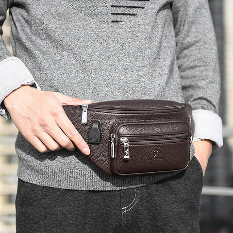 Tämä nahka vyölaukku on täydellinen valinta moderneille, tyylikkäille miehille. Tämä nahkavyölaukku on suunniteltu vastaamaan jokapäiväisiä tarpeitasi ja antamaan samalla ripauksen modernia hienostuneisuutta, joten se on miesten muodin ehdoton valinta.