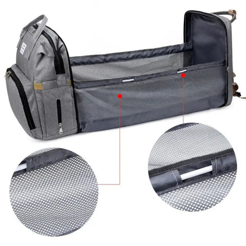 Laajennettavissa vauvan sängyksi vauvan mukavuuden vuoksi, jos haluat vaihtaa häntä tai nauttia hänestä ulkona turvallisesti. Siinä on myös vaunun kiinnikkeet, jotta sinun ei tarvitse kantaa sitä selässäsi. Unisex-muotoilunsa ansiosta se sopii sekä nuorille äideille että isille onnistuneisiin kävelyretkiin.