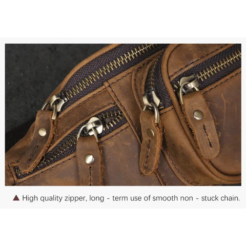 Tämä miesten monitoiminen nahkavyölaukku sopii sinulle, jos etsit käytännöllistä miesten asustetta matkoillesi tai kävelyillesi. Laadukkaan kasvisnahkamallinsa ansiosta tämä laukku on kestävä ja kestää jokapäiväistä kulutusta. Sen runsaan sisätilan ja 4 ulkotaskun ansiosta voit helposti säilyttää avaimet, matkapuhelimen tai lompakon.