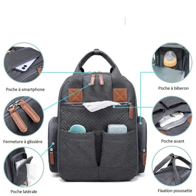 Tämän mukavan hoitolaukkurepun avulla voit unohtaa kaikki huolesi lapsesi hoidosta liikkeellä ollessasi. Tämä kaikki-yhdessä-hoitolaukku, jossa on tilava 25 litran kapasiteetti ja tarrakiinnitys vaunuihin kiinnittämistä varten, on täydellinen kaiken tarvittavan kuljettamiseen vauvallesi.