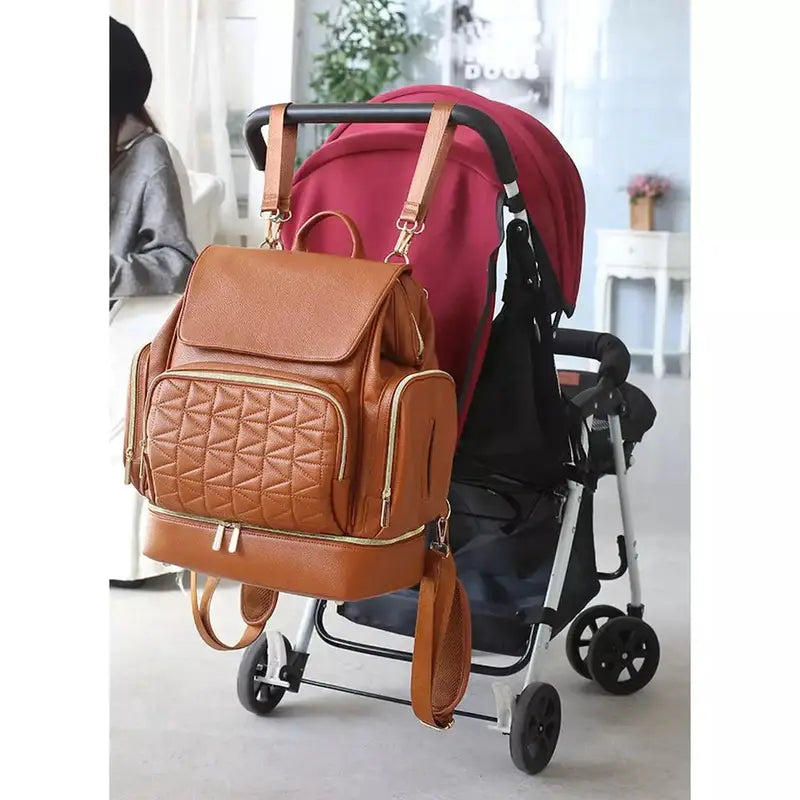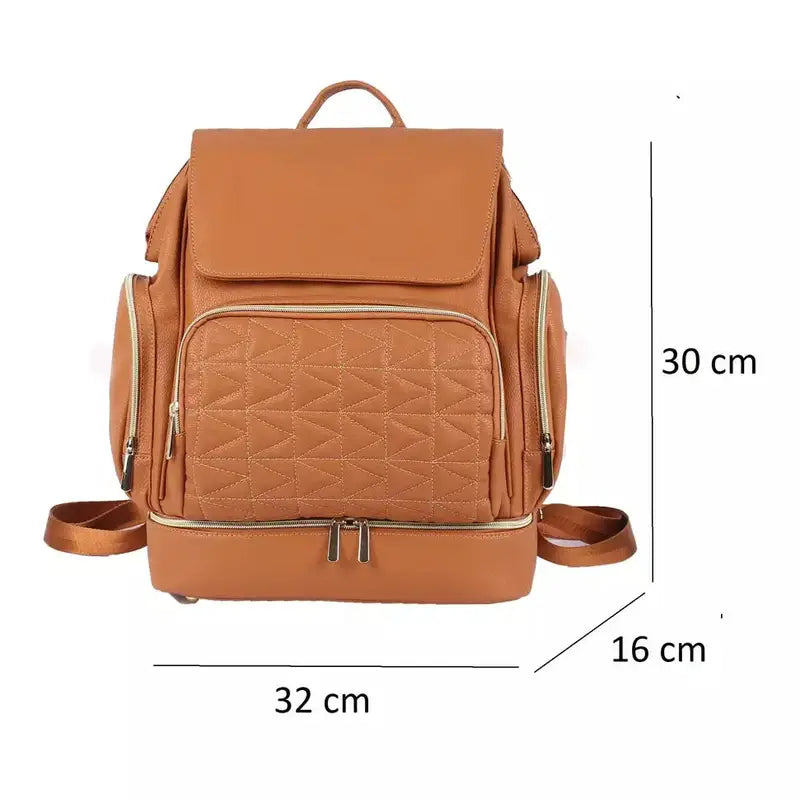 Hanki huippuluokan tyyliä ja käytännöllisyyttä tämän nahkaisen hoitolaukkurepun avulla, joka on suunniteltu vastaamaan modernien vanhempien tarpeisiin. Sen suuren 35 litran tilavuuden, kompaktin koon (32 cm x 30 cm x 16 cm) ja tyylikkään muotoilun ansiosta se yhdistää täydellisesti toiminnallisuuden ja esteettisyyden.