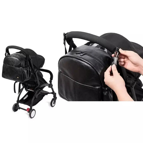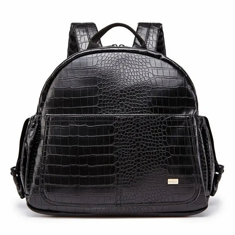 Tämä pieni hoitolaukku-reppu on täydellinen lisävaruste moderneille vanhemmille, jotka etsivät tyyliä ja toiminnallisuutta. Korkealaatuisesta polyuretaaninahasta valmistettu reppu tarjoaa trendikkään ja tyylikkään ulkonäön, mutta on samalla käytännöllinen vauvan kanssa ulos mennessä. Repussa on suuri tilava osasto ja kaksi hyvin järjestettyä sivutaskua, joiden avulla voit pitää vauvan tavarat hyvässä järjestyksessä, kuten vaipat, pyyhkeet, pullot, vaatteet ja paljon muuta.