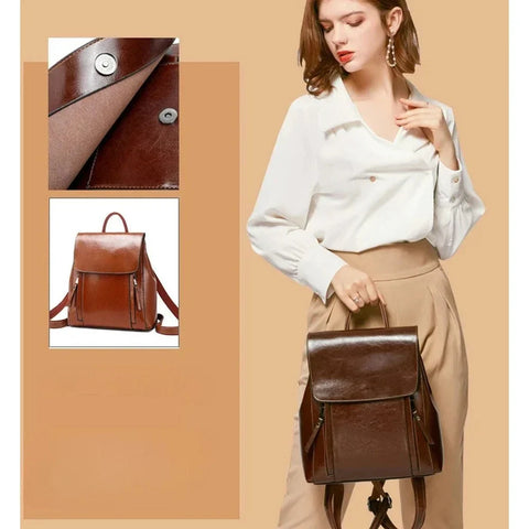 Suunniteltu aktiivisille naisille, tämä naisten ruskea nahkareppu yhdistää tyylikkyyden ja käytännöllisyyden älykkäästi. Ergonominen muotoilu ja tilavat osastot pitävät kaiken käden ulottuvilla: tietokoneen, dokumentit, tarvikkeet tai vesipullon, kaikki kevyessä ja tyylikkäässä muodossa.
