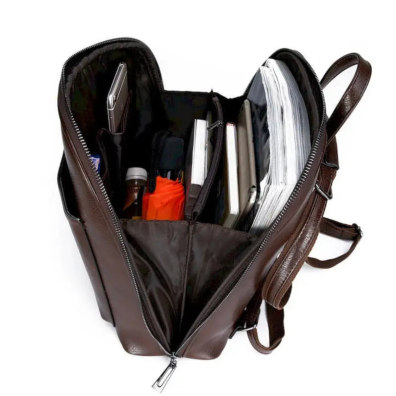 Valmistettu laadukkaasta, vedenkestävästä nahasta, se suojaa tavaroitasi sääolosuhteilta. Klassinen, hillitty look, jossa yhdistyvät tyylikkyys ja eleganssi. Ihanteellinen kaupunkilaisille, siinä on hyvä säilytystila kahdella sisäosastolla ja pienillä taskuilla, jotta pysyt järjestäytyneenä.