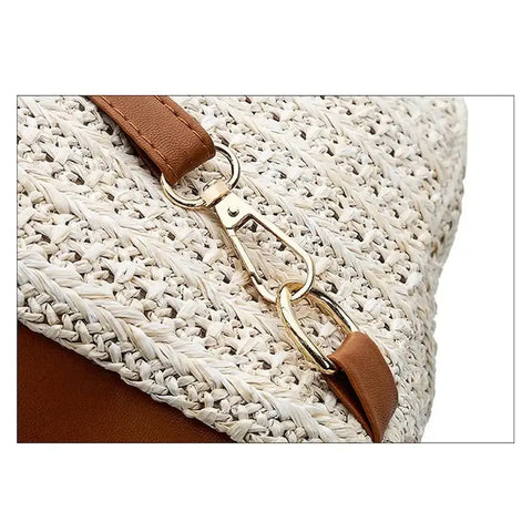 Tämä tyylikäs asuste on valmistettu kankaasta ja oljista, ja se on täydellinen kaikkien rantatarvikkeidesi kuljettamiseen tyylikkäästi. Lisäksi siinä on jopa säädettävät olkahihnat, jotta voit mukauttaa sen omiin tarpeisiisi.
