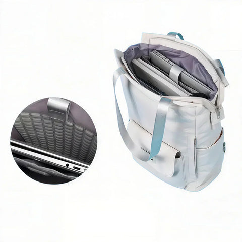 Tutustu naisten reppuun, joka on suunniteltu dynaamisille naisille, jotka etsivät yhdistelmää tyylikkyyttä, keveyttä ja turvallisuutta liikkumisessaan. Repo on suunniteltu mahtumaan kannettava tietokone, joka on jopa 15,6 tuumaa, ja siinä on vahvistettu iskunkestävä suoja sekä tukiremmi, joka takaa laitteesi täydellisen vakauden.