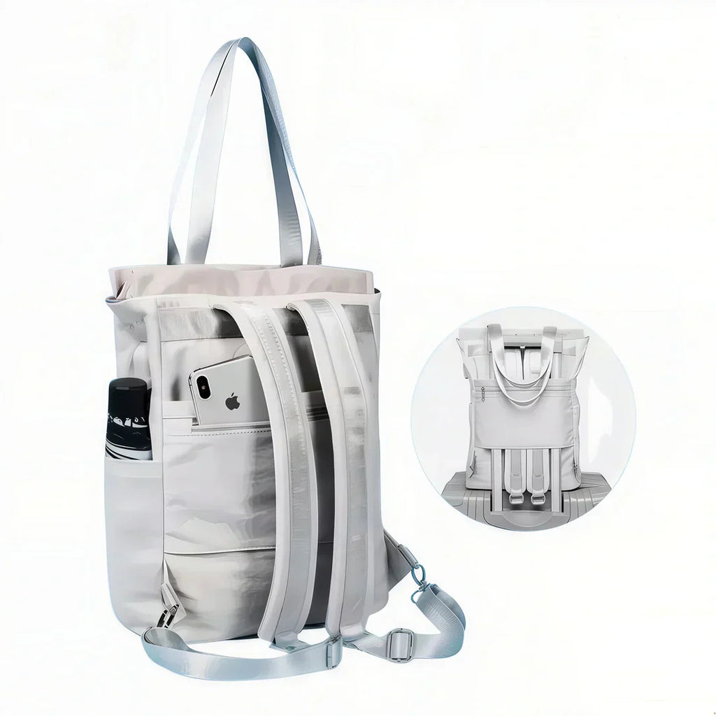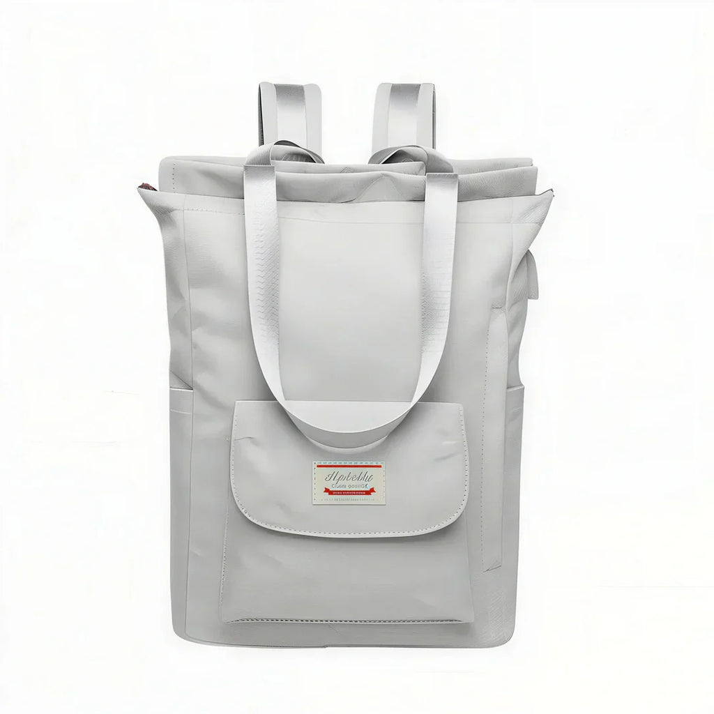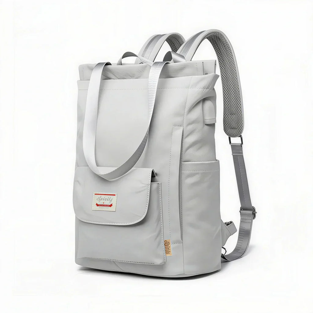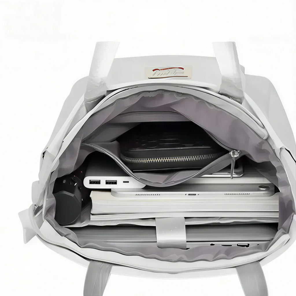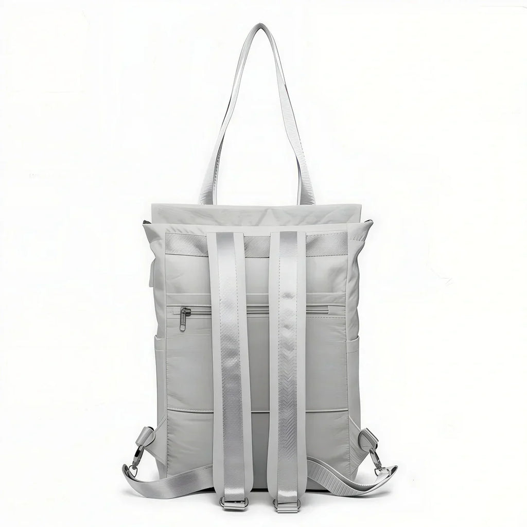Saataavana mustana tai valkoisena, sen huoliteltu muotoilu sisältää pitkän, pehmeän kahvan luonnollista olkapäätä varten ja pehmustetut olkahihnat päivittäiseen mukavuuteen. Huomaamaton ulkoinen USB-portti mahdollistaa laitteiden lataamisen liikkeellä ollessasi.