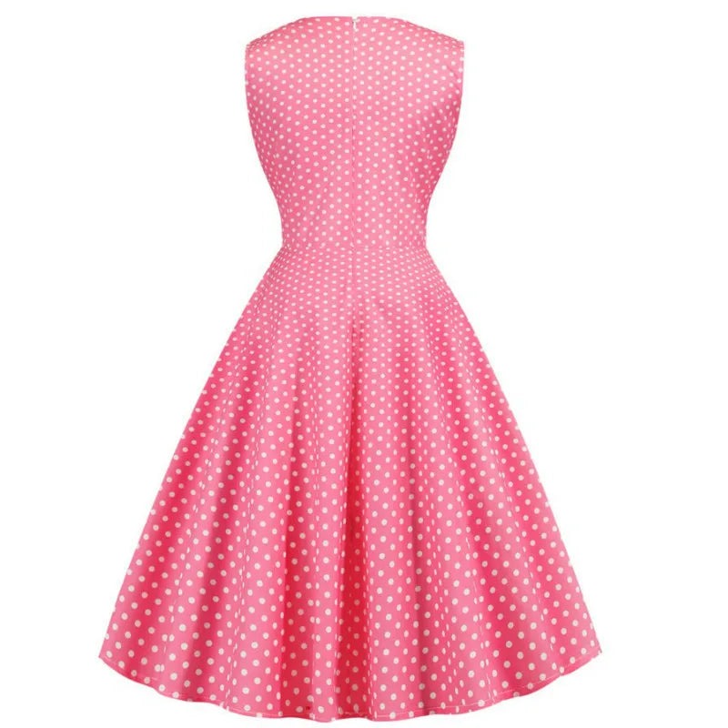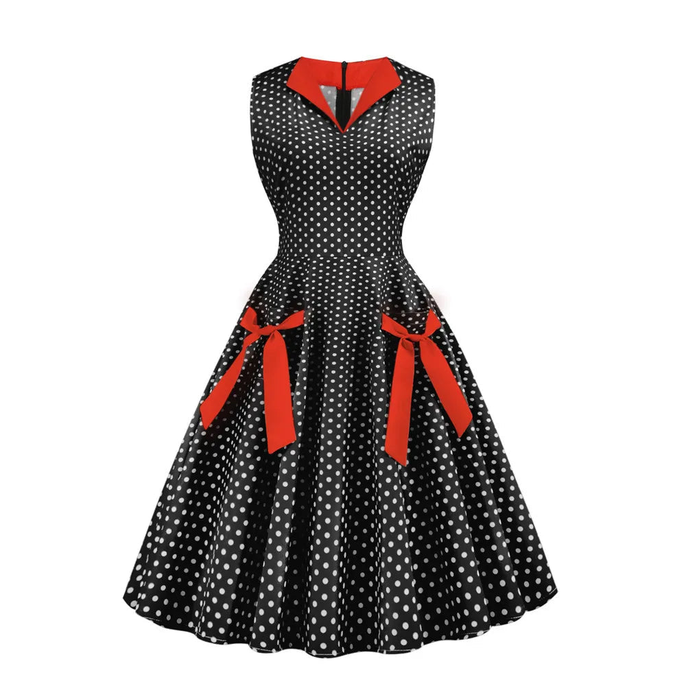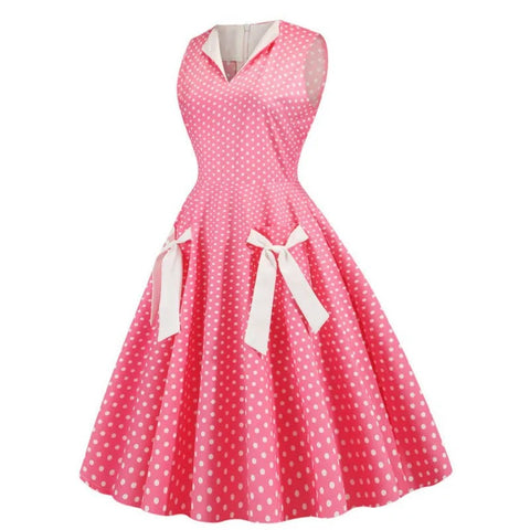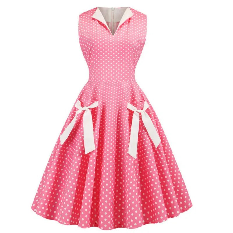 Olipa kyseessä vintage-tapahtuman järjestäminen tai pelkkä intohimo, tämä pilkullinen mekko ruseteilla pin-up-tyylillä on ihanteellinen. Saatavana pinkkinä ja mustana, löydä sinulle parhaiten sopiva väri.