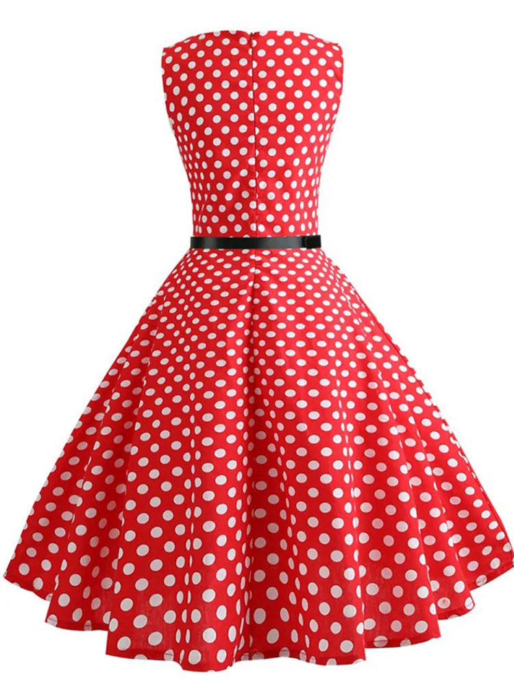 Hanki itsellesi tämän aikakauden ja rohkean rock-lookin rockabilly-tyylinen pilkkumekko. Valitse kahdesta saatavilla olevasta väristä (valkoiset pilkut ja mustat pilkut) ja viimeistele retro rock-asusi.