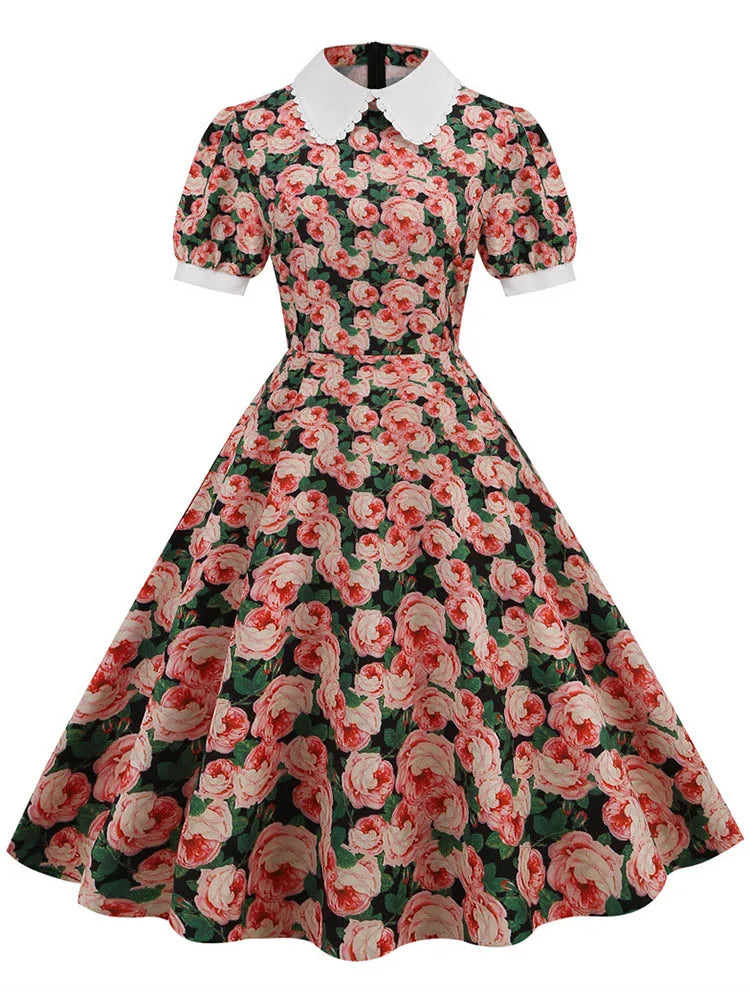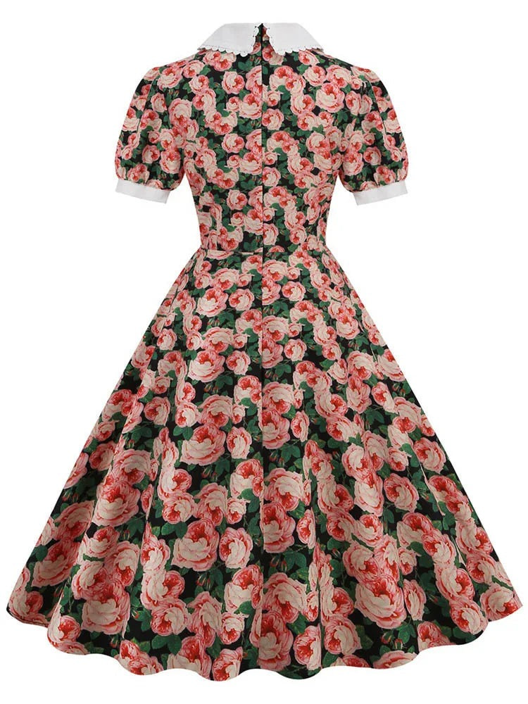 Hurmaa ruusukuvioisella pin up -mekolla