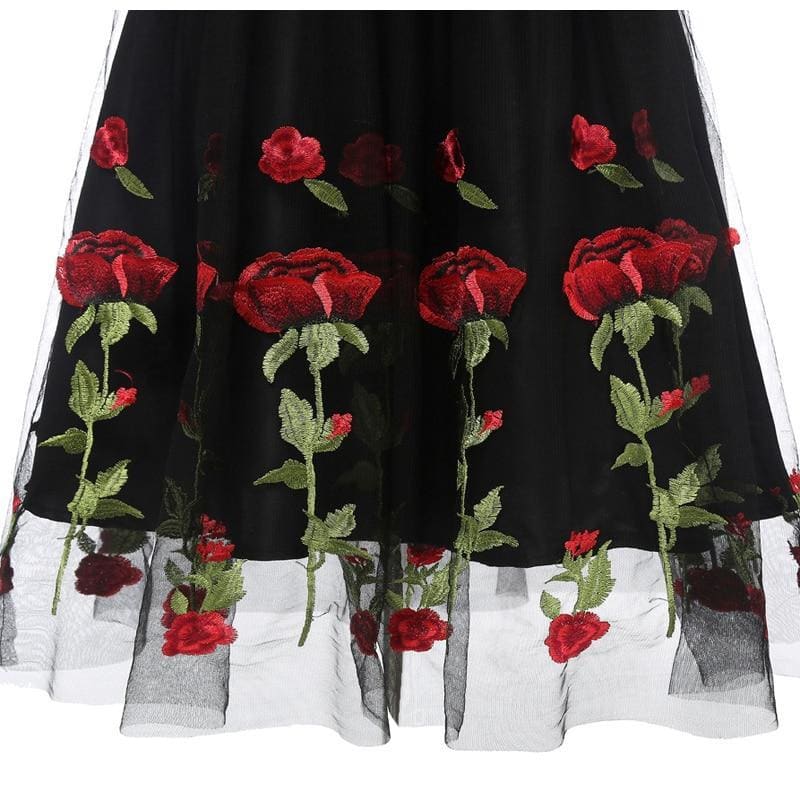 Ihanteellinen illanviettoon tai tyylikkääseen pin-up-aiheiseen vastaanottoon, tämä läpinäkyvä alahelmainen mekko tekee sinusta todellisen ihmeen. Hämmästyttäkää ympärilläsi olevia henkilöitä tässä upeassa vintage-asussa. Eleganssisi on vertaansa vailla.