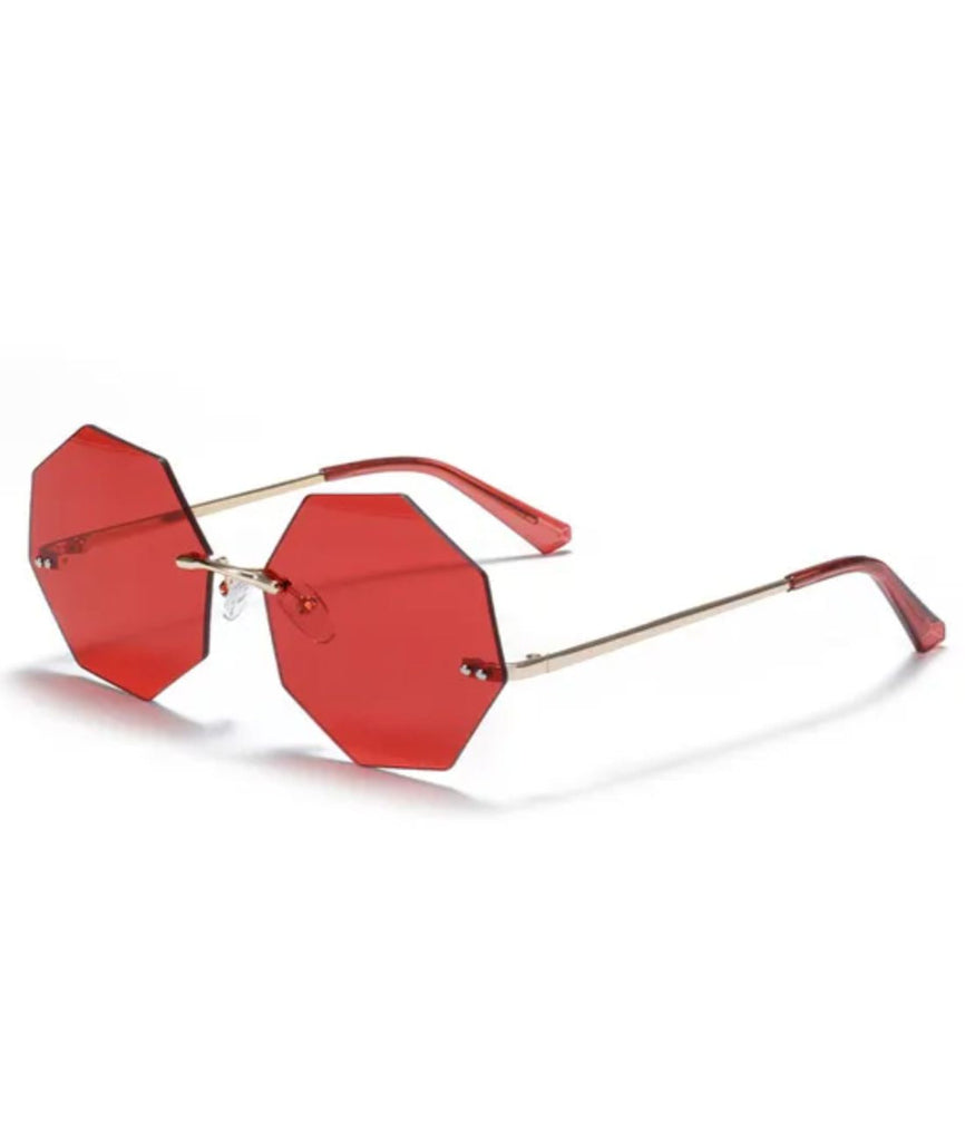 Olemme iloisia voidessamme tarjota sinulle näitä vintage-tyylisiä punaisia oktogonaalisia aurinkolaseja.