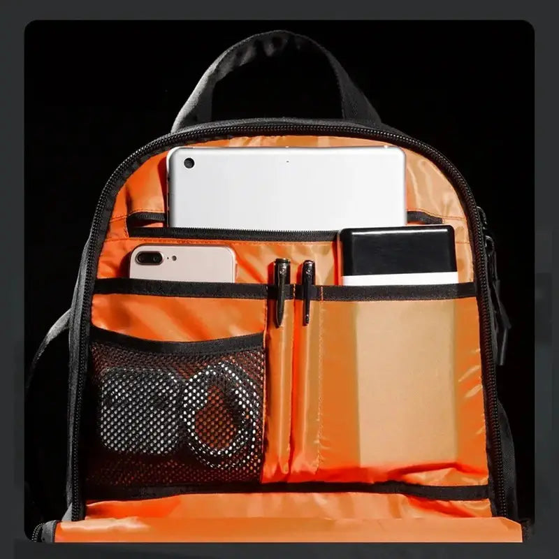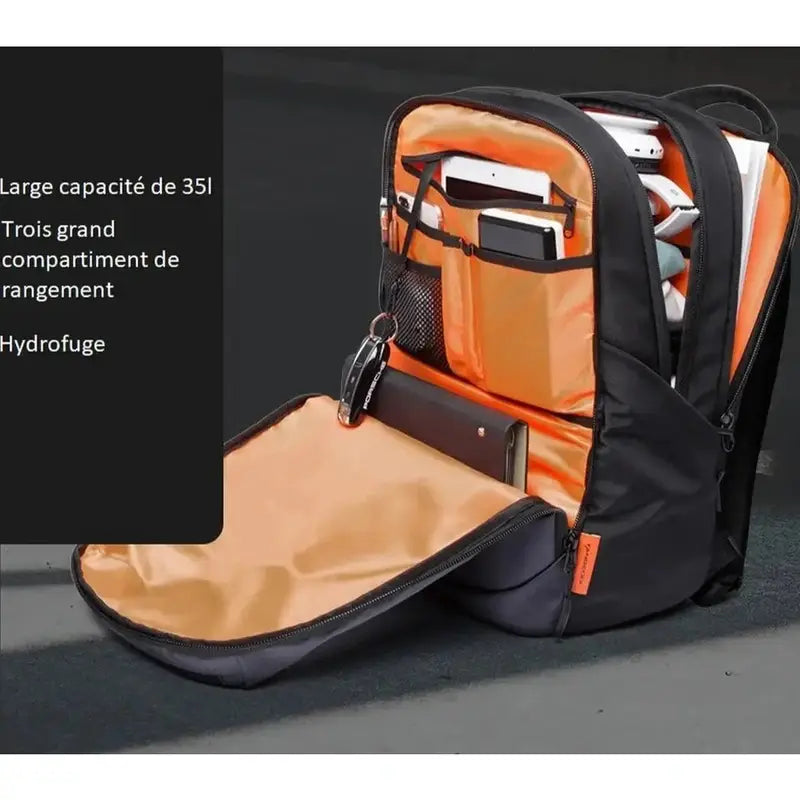Tämä reppu sisältää 3 suurta osastoa, joiden kokonaiskapasiteetti on 35L. Täysin vedenkestävä, siinä on ergonominen muotoilu ja se tarjoaa hengittävän pehmustetun selkänojan sekä paksut pehmustetut hihnat optimaalisen mukavuuden ja tuen takaamiseksi liikkuessasi. Sen ergonominen muotoilu tekee siitä ihanteellisen selkäkipujen ehkäisyyn. Siinä on myös heijastava nauha yölliseen käyttöön ja lukuisia säilytystaskuja.