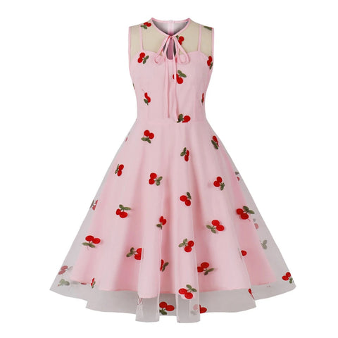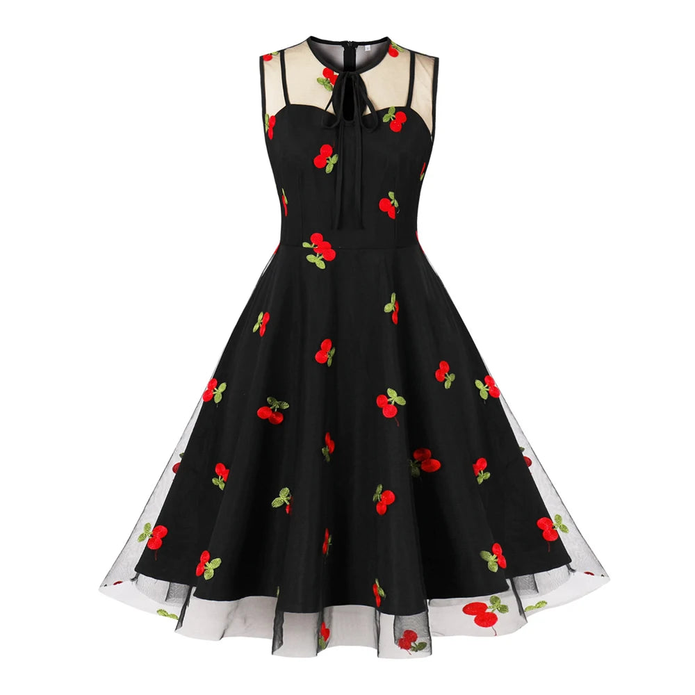 Haluatko pukeutua kauniiseen rockabilly-mekkoon, jossa on kirsikkakuvioita?