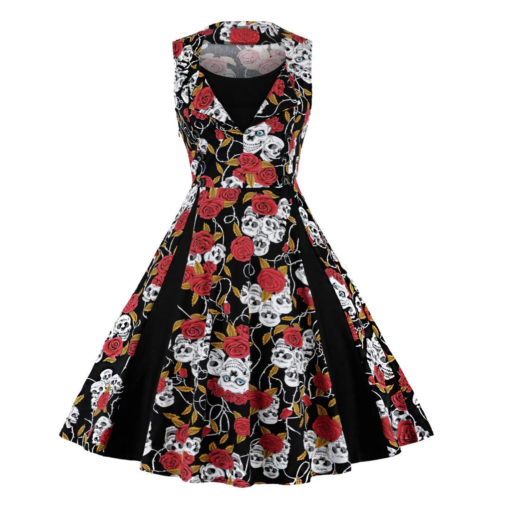 Olet kutsuttu erityiseen rock-teemaiseen tapahtumaan ja haluat pukeutua retrotyyliin. Mikä olisi alkuperäisempää kuin tämä iso rockabilly-mekko. Käytä sitä tapahtumapäivänäsi ja ole eleganssisi huipulla!