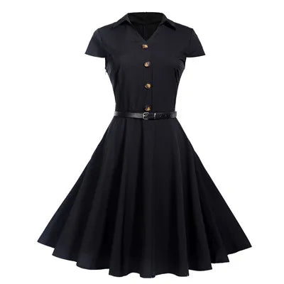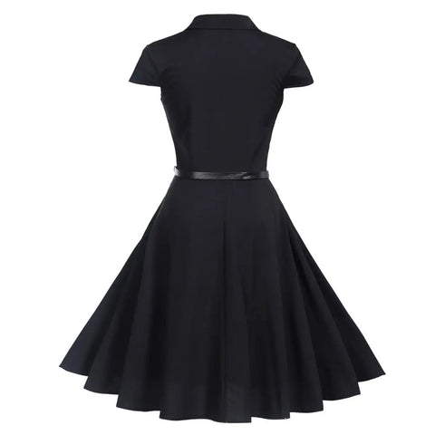 Edullinen ja tyylikäs yksinkertaisuudessaan, tämä yksinkertainen rockabilly-tyylinen mekko pukee sinut teemajuhliisi. Ihastu tähän kauniiseen mekkoon, joka tuo rokkityylisi esiin heti ensimmäisestä sekunnista lähtien. Vyö sisältyy tilaukseesi.