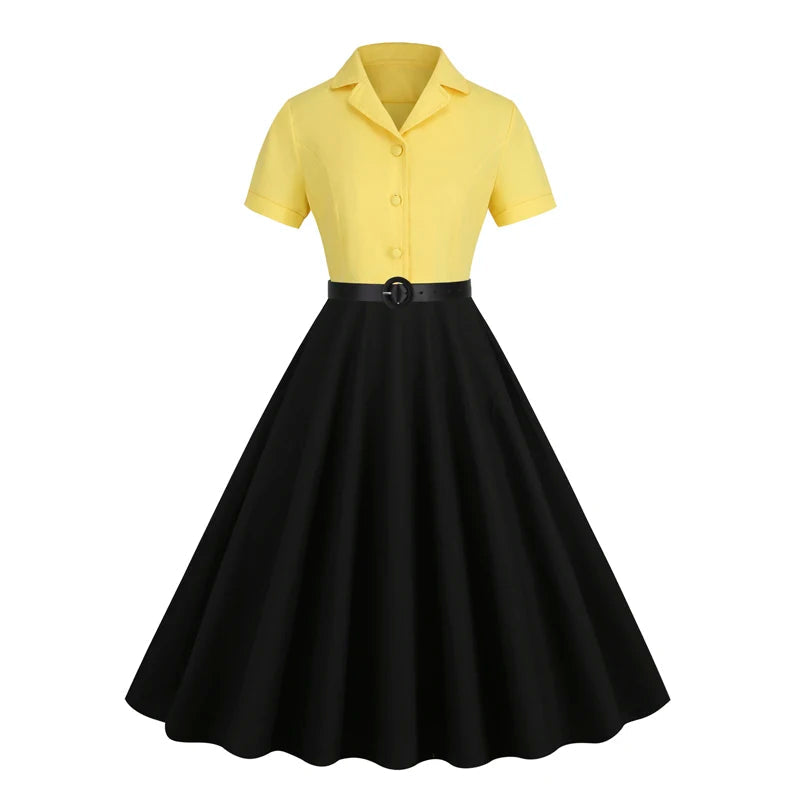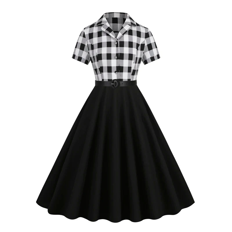 Pukeudu tämän uskaliaan rockabilly-lookin mekon eleganssiin. Muutu tyyliltään rockia rakastavaksi femme fataliksi. Tämä mekko on täydellinen, jos haluat tuntea itsesi divaksi illan ajaksi. Älä odota enää, hanki itsellesi tämä upea vintage-mekko!