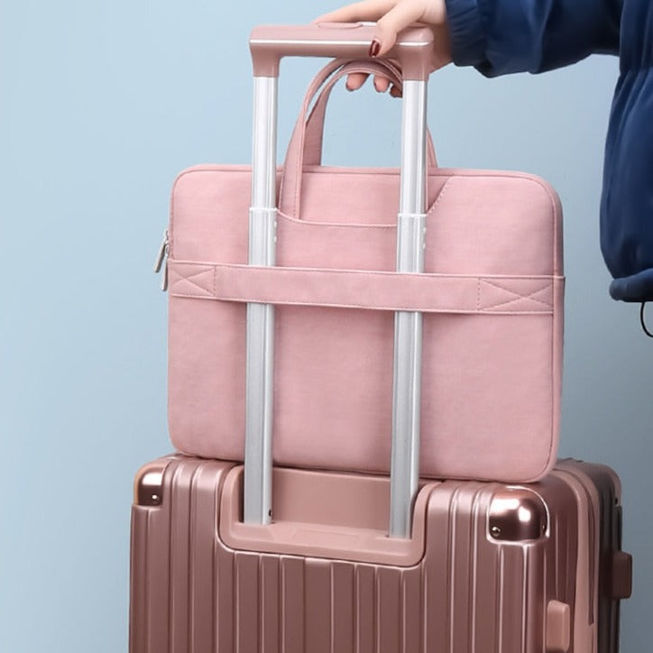 Tämä vaaleanpunainen tietokonelaukku auttaa sinua pysymään järjestäytyneenä koko päivän ajan lukuisien säilytystaskujensa ansiosta. Suojaa kannettavaa tietokonettasi, joka on jopa 15,6 tuumaa.