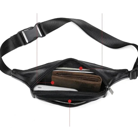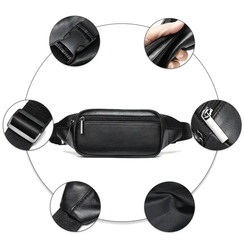 Valitse tyylikkyys ja toiminnallisuus tämän mustan, säädettävän vyölaukun avulla.