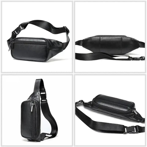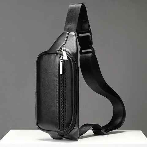 Miehille, jotka etsivät käytännöllistä ja tyylikästä asustetta, tämä musta säädettävä vyölaukku on ihanteellinen ratkaisu. Tämä käytännöllinen kasvisnahkalaukku sopii täydellisesti täydentämään ulkonäköäsi hienostuneella ripauksella, ja se on pakollinen hankinta kaikkina vuodenaikoina. Korkealuokkaisen muotoilunsa ja modernin tyylinsä ansiosta se vastaa nykyaikaisen miehen tarpeita, olipa kyseessä sitten kiireinen päivä tai rento retki.