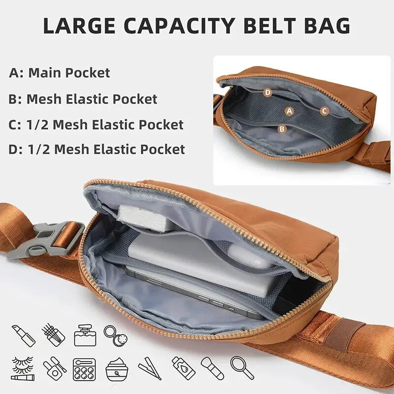 Tämä suorakulmion muotoinen vyölaukku on suunniteltu niin, että se istuu mukavasti vyötärön ympärille ja antaa sinulle helpon pääsyn välttämättömiin tavaroihin, kun olet liikkeellä. Tässä vyölaukussa on useita lokeroita, joiden avulla voit järjestää tavarasi siististi, joten sinun ei tarvitse etsiä avaimia, puhelinta tai lompakkoa.