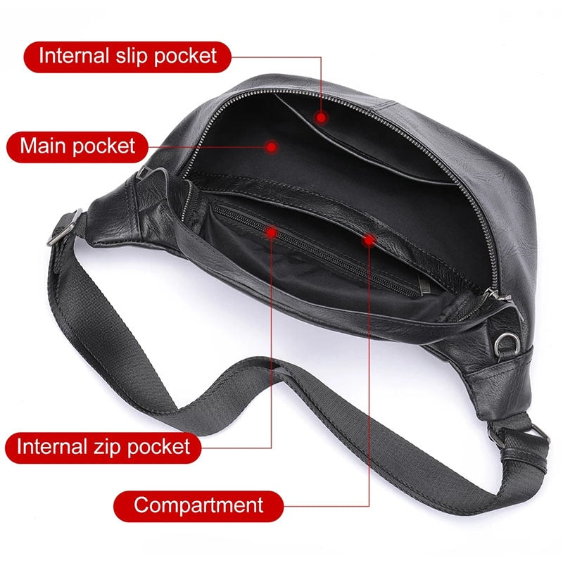 Rakastat tämän suuren mustan miesten vyölaukun suurta säilytystilaa.