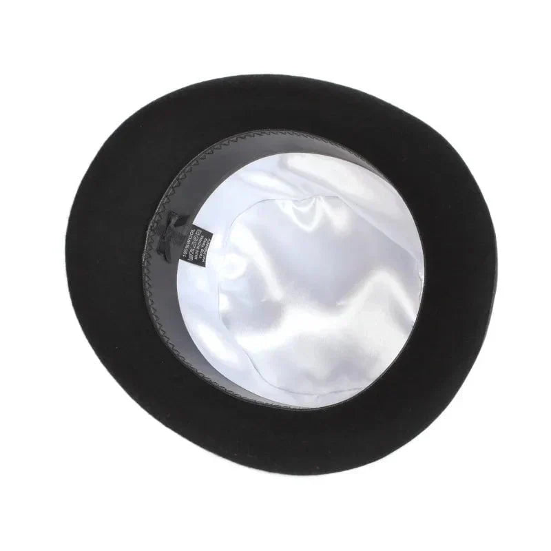Tämä korkealaatuisesta villasta valmistettu tyylikäs knallihattu on suunniteltu poikkeuksellisen mukavaksi ja kestäväksi. Sen villahuoparakenne takaa täydellisen istuvuuden, ja sen tyylikäs musta sävy tekee siitä tyylikkään valinnan kaikkiin tilaisuuksiin.