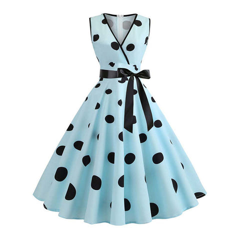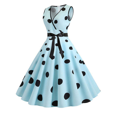 Erittäin mukava ja tyylikäs, tämä taivaansininen polkadot pin up -mekko korostaa vyötäröä ja on tyypillinen pin up -tyylinen asu. Kanna tätä mekkoa ylpeänä saavuttaaksesi vintage Betty Boop -vaikutelman.
