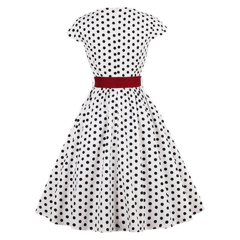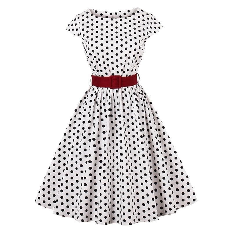 Tämä kaunis, yksinkertainen ja pin up -tyylinen mekko on hyvin viehättävä yhdessä mustien sukkahousujen kanssa. Olitpa sitten pisteiden tai ruutukuosin ystävä, tämä mekko tulee varmasti viehättämään sinua. Valitse vintage-eleganssi. Monikäyttöinen ja hillitty, se on aikakauden symboli.