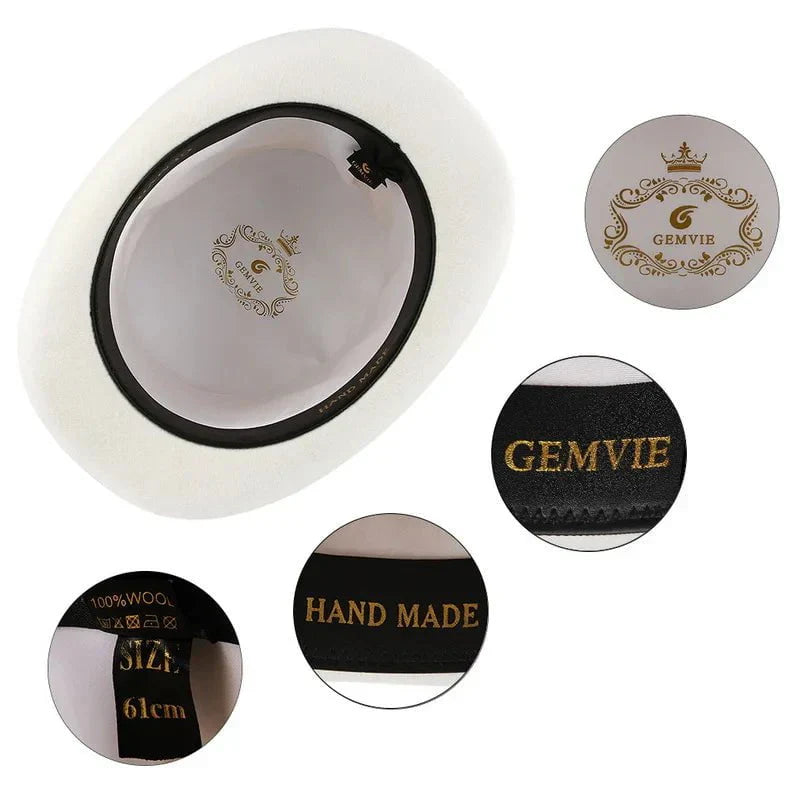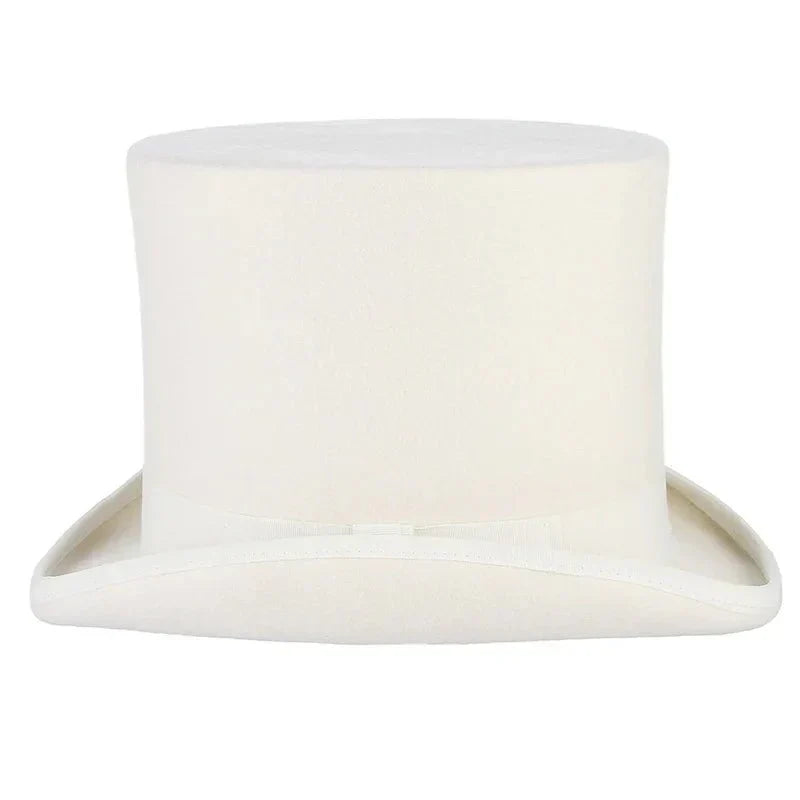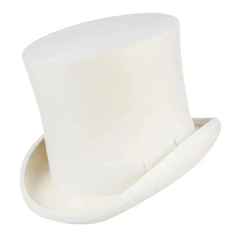 Tämä valkoinen silinterihattu on täydellinen lisävaruste niille, jotka haluavat lisätä asuunsa ripauksen hienostuneisuutta ja eleganssia. Olipa kyseessä sitten häät, juhlallinen ilta tai teematapahtuma, tämä hattu erottuu ajattomalla tyylillään ja kyvyllään mukautua mihin tahansa tilanteeseen. Sen moitteeton valkoinen väri tuo hattuun puhtautta ja erottuvuutta, mikä tekee tästä hatusta olennaisen tärkeän valinnan erityistilaisuuksiin.