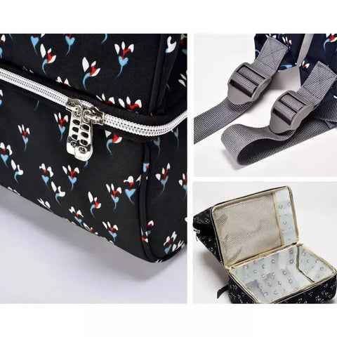 Tutustu tähän vedenpitävään hoitolaukku-reppuun, jonka tilavuus on 30L. Laukussa on päälokero, jossa on useita säilytystaskuja, sekä alaosassa eristetty lokero, joka on eristetty lämpöeristykseen, jolloin ruokaa voidaan säilyttää useita tunteja. 300D-polyesterirakenne tarjoaa suuren vastustuskyvyn repeämiä ja iskuja vastaan sekä erinomaisen vedenpitävyyden vauvan tavaroiden säilyttämiseksi. Laukkua voidaan kantaa kädessä tai reppuna säädettävien olkahihnojen ansiosta, siinä on tarrakiinnitys ja se toimitetaan kahdella vaunukiinnityshihnalla. Saatavilla useissa väreissä ja tulostetuilla kuvioilla.