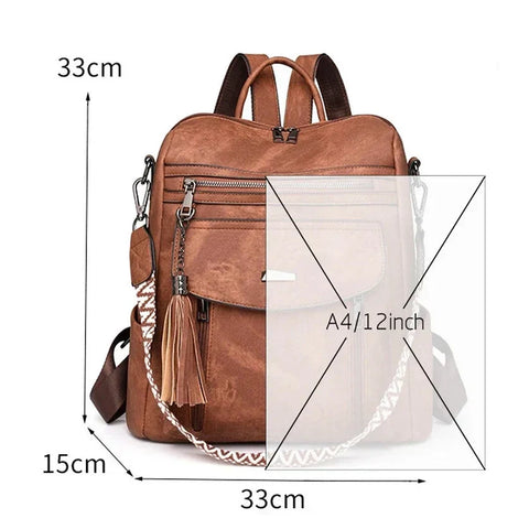 Kasvisnahkasta valmistettu yksinkertainen reppu on välttämätön jokapäiväisen tyylikkyyden ja järjestäytyneisyyden saavuttamiseksi. Se on suunniteltu kuljettamaan kirjoja, vihkoja ja kannettavaa tietokonetta, yhdistäen mukavuuden ja kestävyyden. Useat taskut mahdollistavat optimaalisen säilytyksen, kun taas pehmustetut olkahihnat takaavat miellyttävän kantamisen koko päivän ajan.
