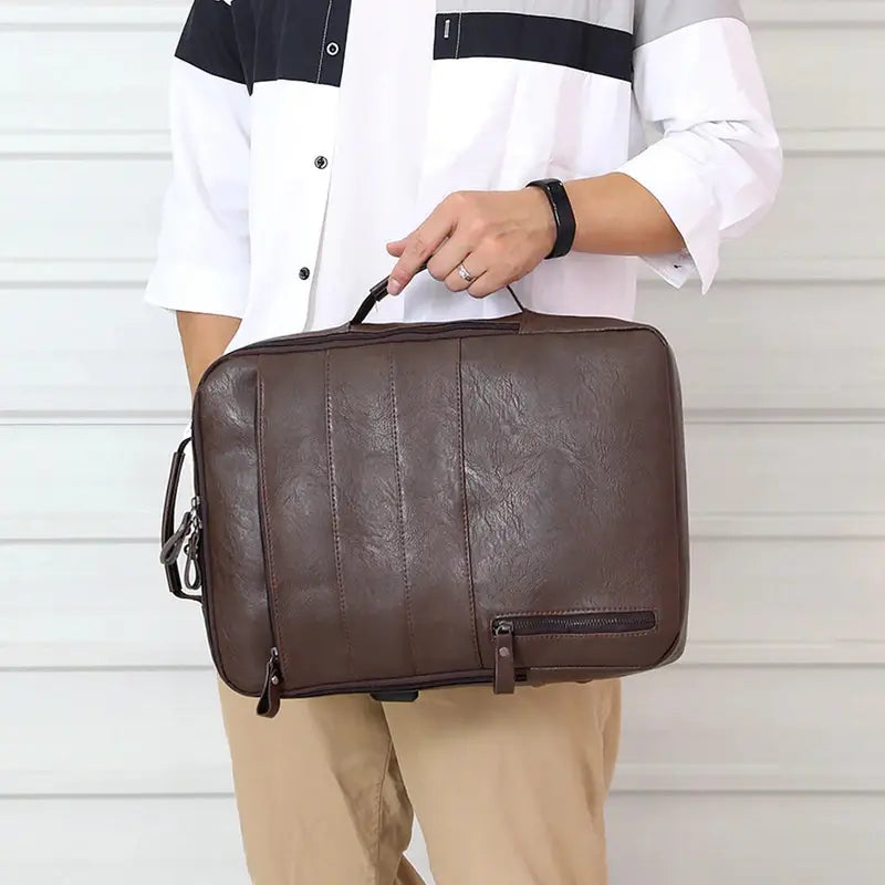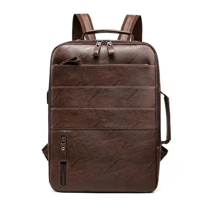 Tämä miehille suunniteltu vegaaninen nahkareppu tarjoaa sinulle ainutlaatuisen tyylin ja yksinkertaistetun toiminnallisuuden. Siinä on tilava päälokero ja useita taskuja, jotka auttavat sinua järjestämään tavarasi tehokkaasti. Voit helposti säilyttää 15 tuuman kannettavan tietokoneen, tabletin, asiakirjat, avaimet, matkapuhelimen ja muut välttämättömät tarvikkeet yksinkertaisesti mukanasi päivittäisessä elämässäsi, samalla kun pidät tyylikästä ja tyylikästä ilmettä.