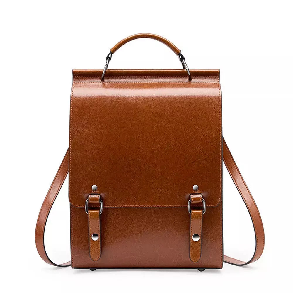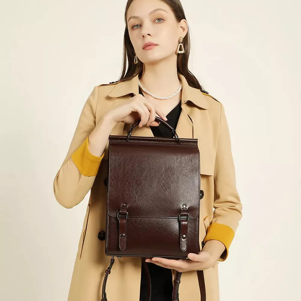 Tämä naisten vintage-tyylinen nahkareppu yhdistää tyylikkyyden ja materiaalien kunnioituksen täydellisesti. Suunniteltu kestämään, se panostaa vahvaan rakenteeseen ja laadukkaisiin viimeistelyihin. Sen hillitty ja hienostunut siluetti tekee siitä monikäyttöisen asusteen, joka sopii kaikkiin tilanteisiin. Useiden taskujen ansiosta se mahdollistaa sujuvan ja intuitiivisen järjestelyn.