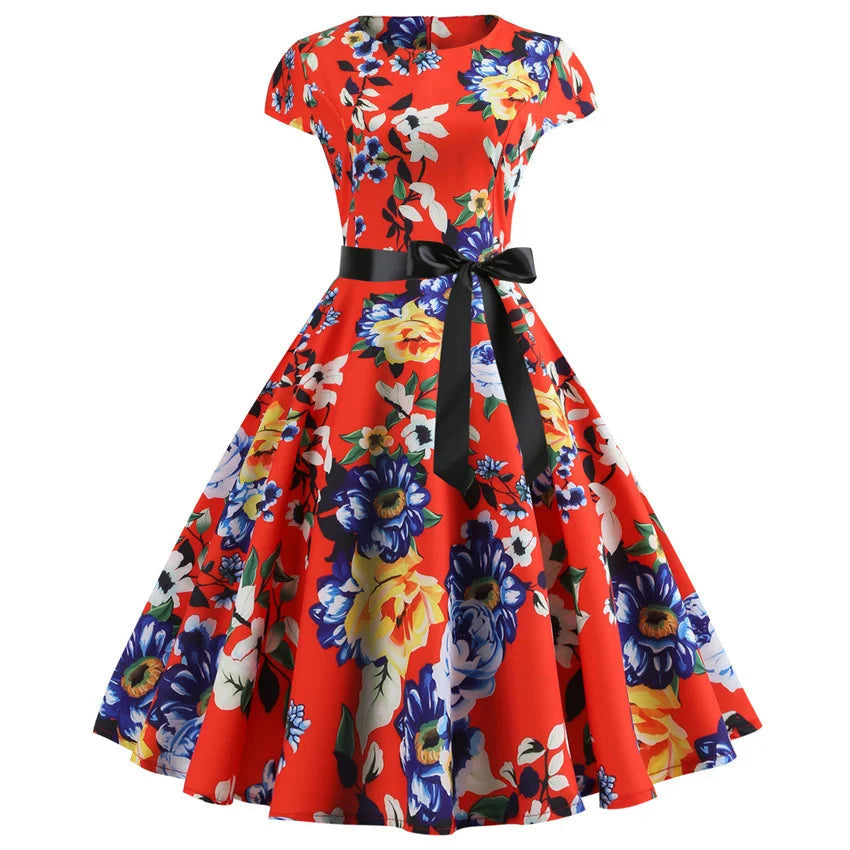 Jos etsit edullista vintage pin up -tyylistä mekkoa, ei sinun tarvitse etsiä enää. Tämä asu on tehty juuri sinulle. Sen punainen väri ja kukkakuvio tekevät siitä glamouria ja vintagea huokuvan.