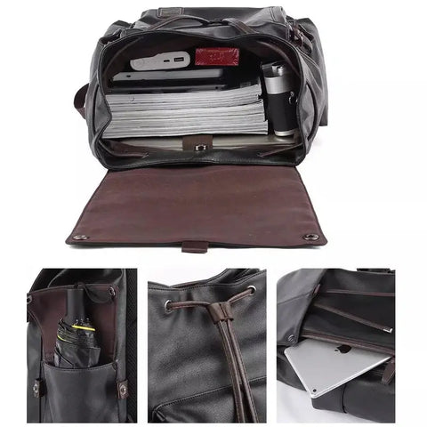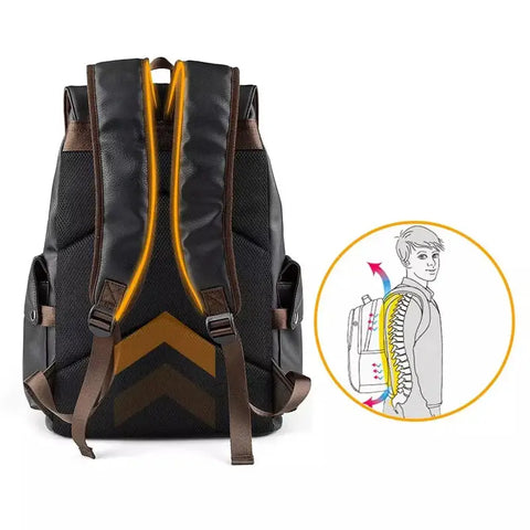 Tutustu tähän antiikkityyliseen reppuun, tyylikäs ja trendikäs välttämätön tarvike. Se on valmistettu vahvistetusta synteettisestä PU-nahasta, se on vedenkestävä ja suojaa tavaroitasi sateelta. Siinä on tilava päälokero, kaksi sivutaskua ja siinä on tila kannettavalle tietokoneelle sekä USB-portti. Sen ergonominen pehmustettu selkäosa ja pehmustetut olkahihnat tarjoavat suuren kantamismukavuuden. Siinä on vetoketjusulkija ja nappitaskut, jotka antavat sille oman erityisen tyylin.