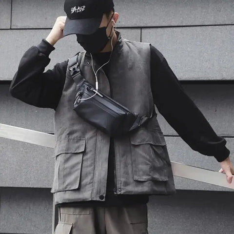 Sukella tyylikkyyden ja käytännöllisyyden maailmaan tämän mustan vyölaukun avulla. Tämä vedenpitävästä Oxford-kankaasta valmistettu vyölaukku suojaa välttämättömät tavarasi jopa sadepäivinä. Useat taskut tarjoavat runsaasti säilytystilaa ja pitävät tavarasi järjestyksessä ja käden ulottuvilla.